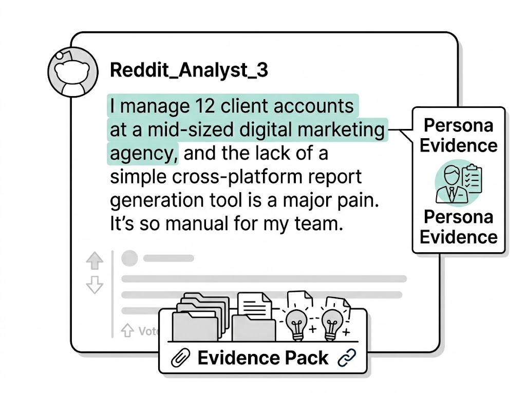 For each signal, you attach an Evidence Pack: click‑through quotes + permalinks.