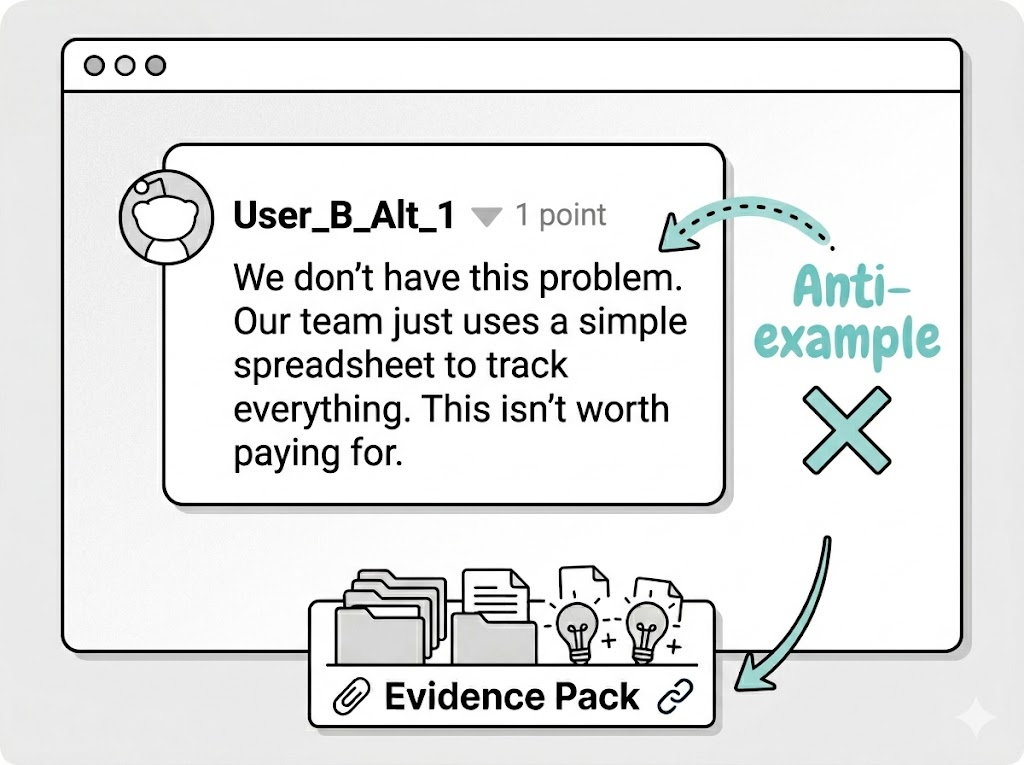 - Copy exact user phrasing from evidence into your landing page or outreach.